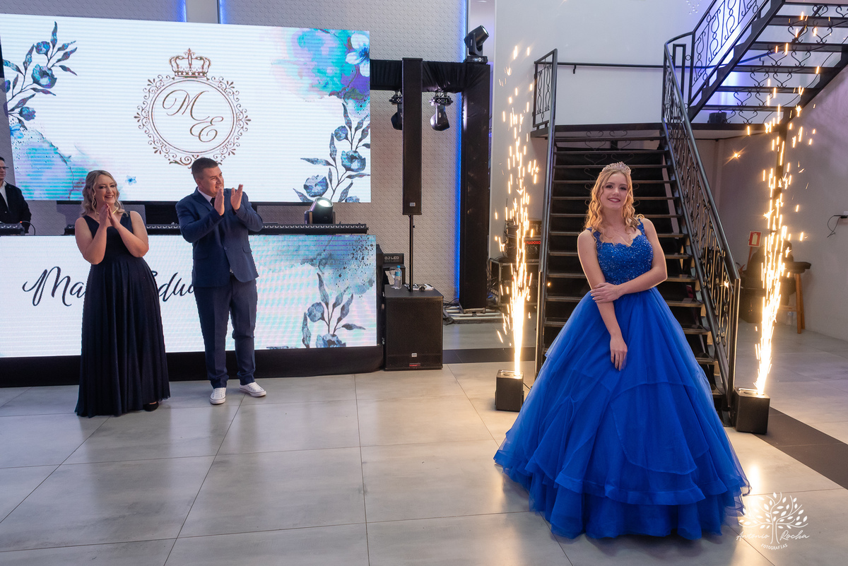 A festa de 15 anos da Maria Eduarda foi um daqueles momentos que ficam guardados na alma. Tudo começou com um ensaio na Chácara Fiss, onde criamos memórias lindas antes mesmo da grande noite. Foi um ensaio leve, cheio de risos, energia e a presença da família — a verdadeira essência dela. E, claro, quando o ensaio já é incrível, a festa não poderia ser diferente.