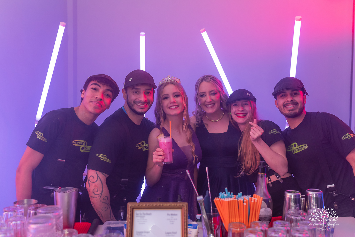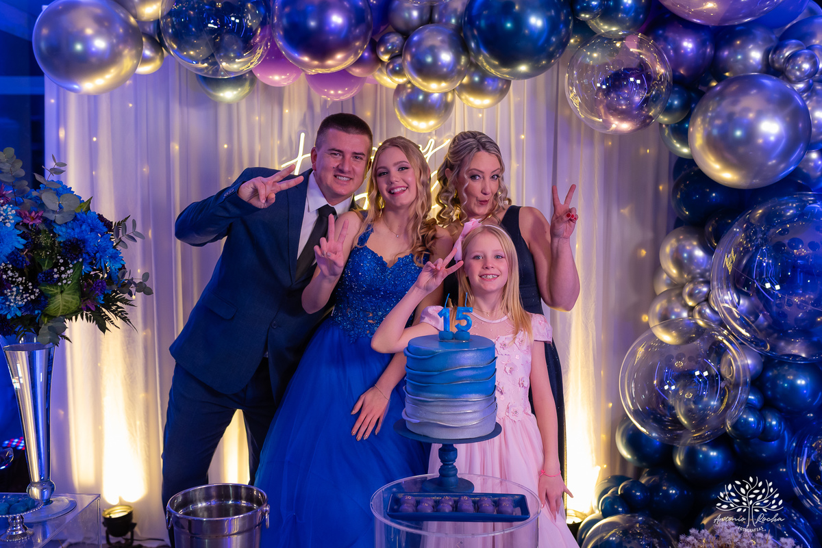 A noite foi mega especial: amigos e familiares reunidos para celebrar esse marco na vida da Duda. Teve descida emocionante, dança com 15 pessoas que marcaram sua trajetória, uma coreografia animada com a amiga e homenagens que tocaram o coração de todos. Mas o ponto alto foi a abertura da pista de dança, feita pela debutante junto dos pais e da irmã. Uma conexão familiar intensa, que mostrava exatamente quem eles são: união, amor e alegria.
