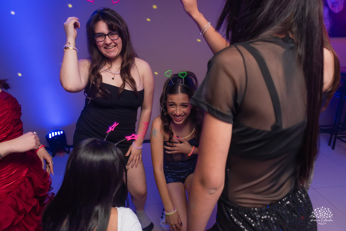 A marca registrada dessa família são os sorrisos intensos — ou melhor, aquelas gargalhadas que contagiam quem está por perto. Entre fotos no espelho mágico, encontros cheios de carinho e a entrada especial conduzida pelos irmãos, Luiza viveu cada segundo com brilho nos olhos. Ao chegar até os pais, foi surpreendida com o anel de 15 anos, em um dos momentos mais emocionantes da noite.