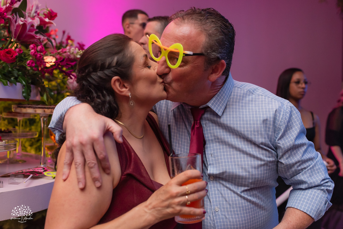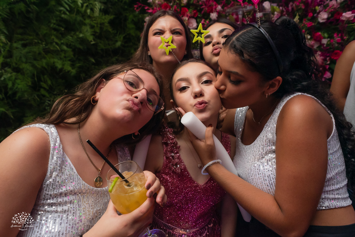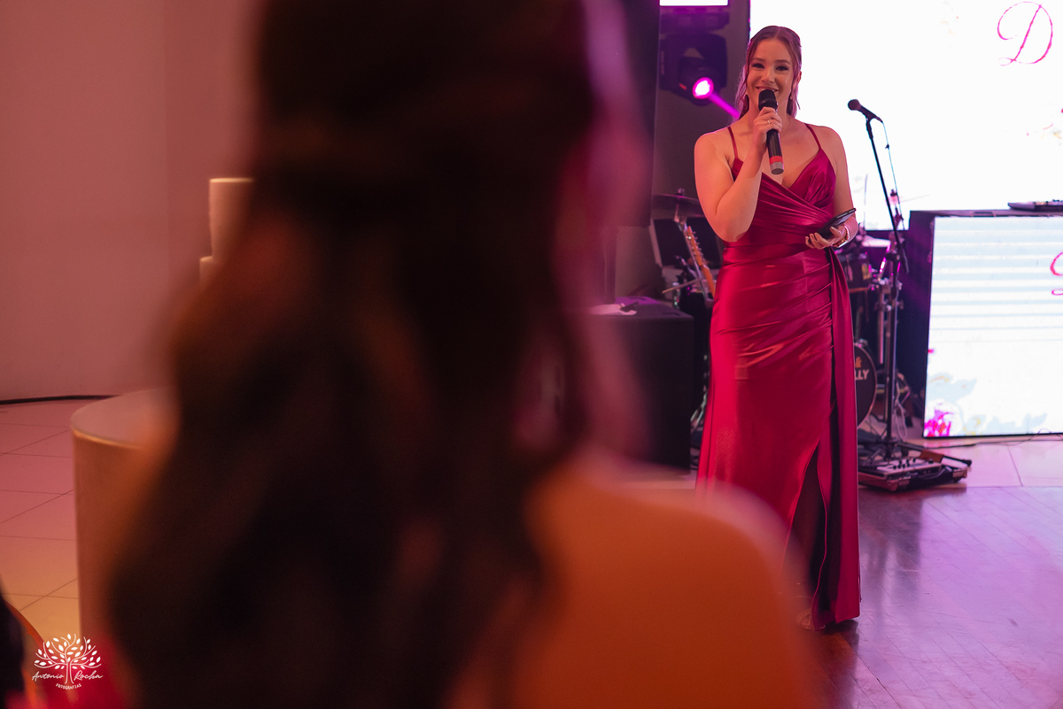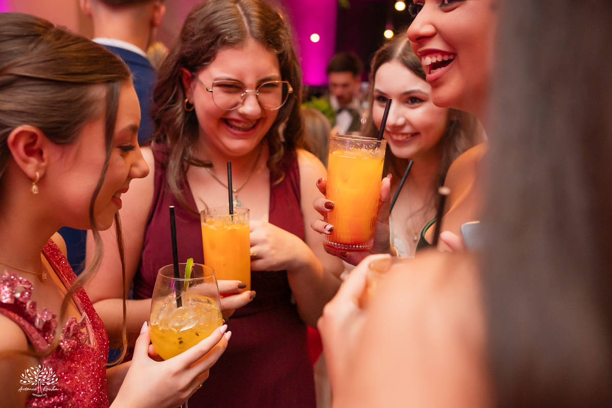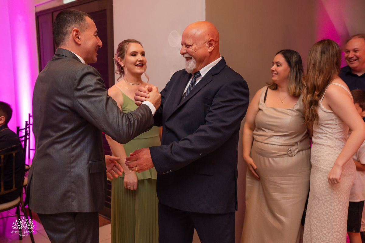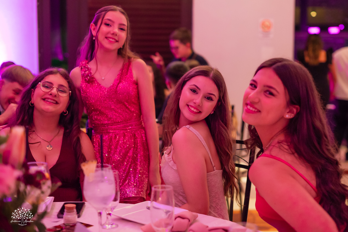 Ao chegar no salão, ficou claro que a noite seria inesquecível. A recepção calorosa, os abraços apertados e os amigos que caminham junto com essa família ao longo da vida da Diulya criaram uma atmosfera única. Era um ambiente onde o amor e a conexão estavam presentes em cada encontro, em cada sorriso.