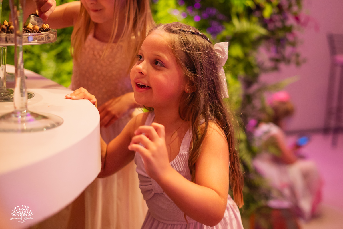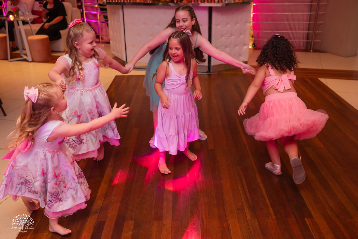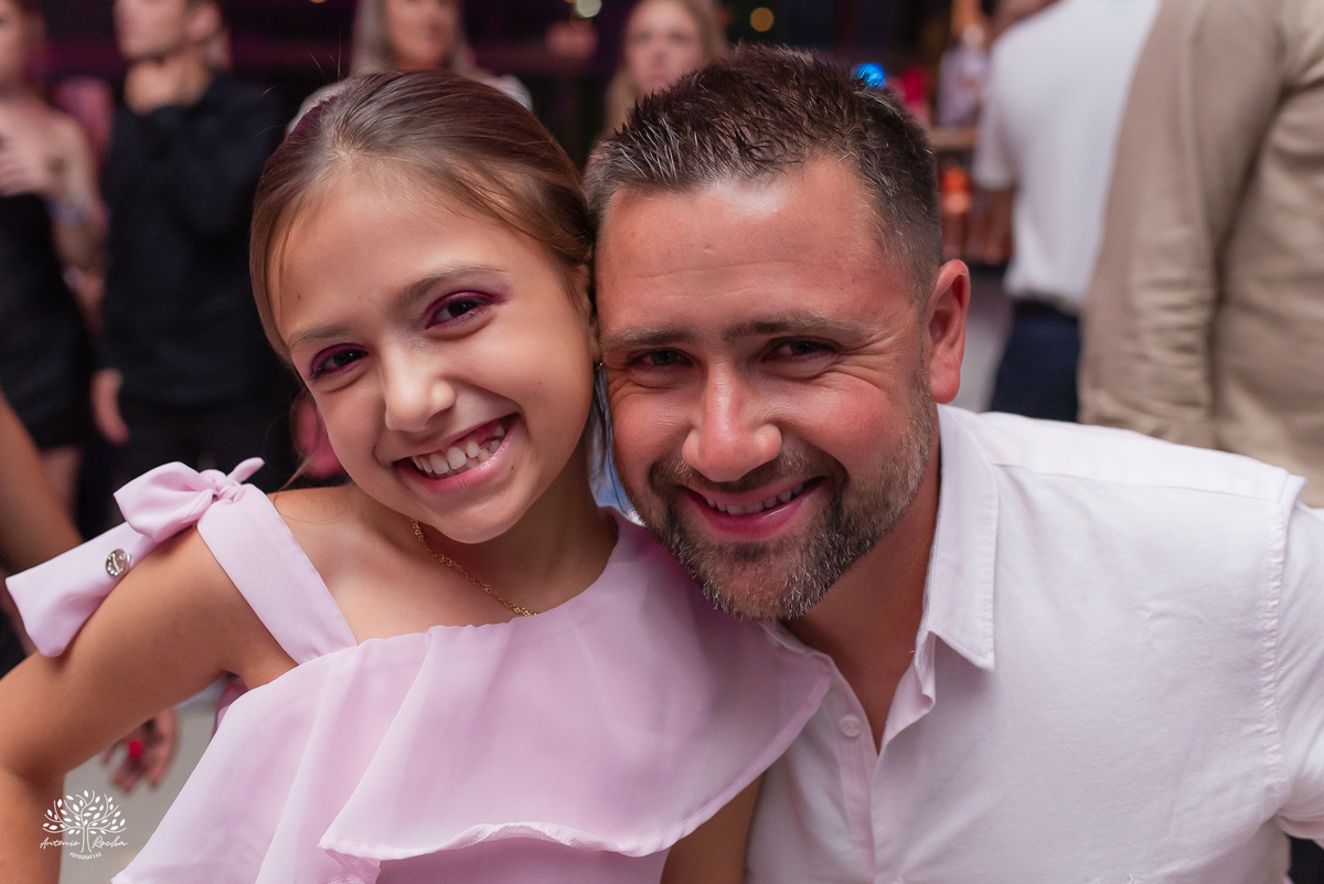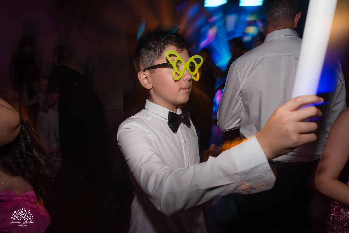 A festa ganhou ainda mais energia com a animação contagiante, o bar de drinks sempre movimentado e a tão esperada entrada da Diulya, que marcou um dos grandes momentos da noite. Vieram então as danças: com o pai, com o irmão, a valsa com os dindos — instantes que emocionaram e prepararam o clima para o parabéns.