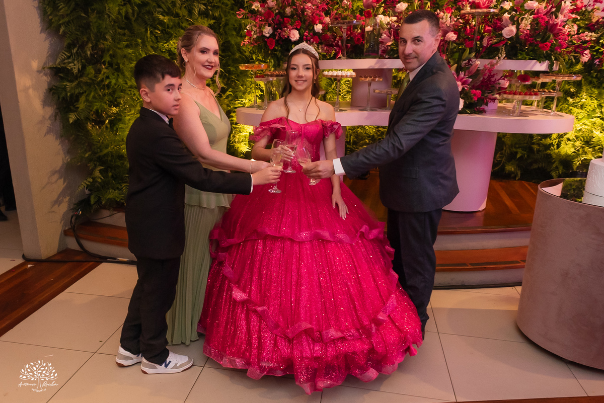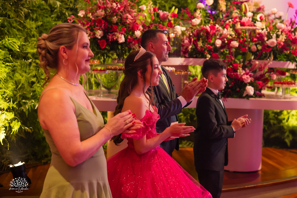 Os 15 anos da Diulya foram um daqueles dias que começam com emoção e terminam com o coração cheio de memórias inesquecíveis. Tudo teve início no making of, no Espaço Mayer, onde cada detalhe já revelava o quanto essa data era especial. Ao lado da mãe, Diulya recebeu o carinho da família em forma de um lindo buquê de flores — um gesto simples, mas carregado de amor e significado.