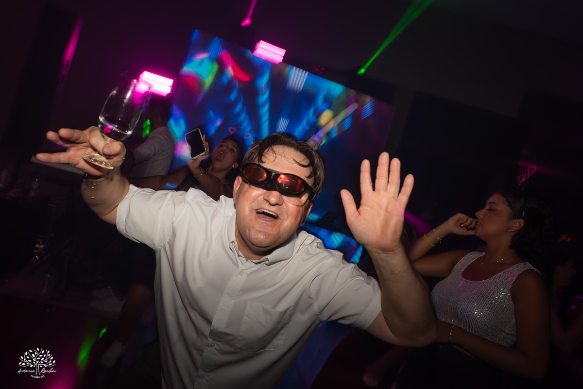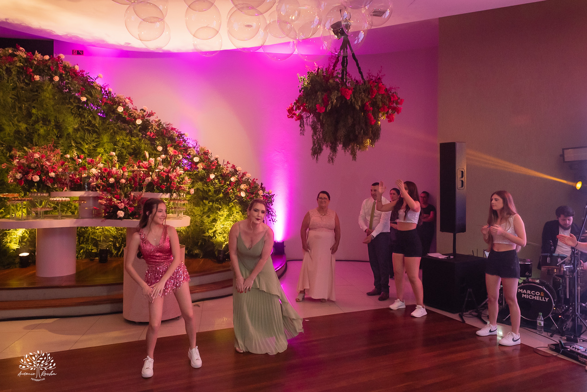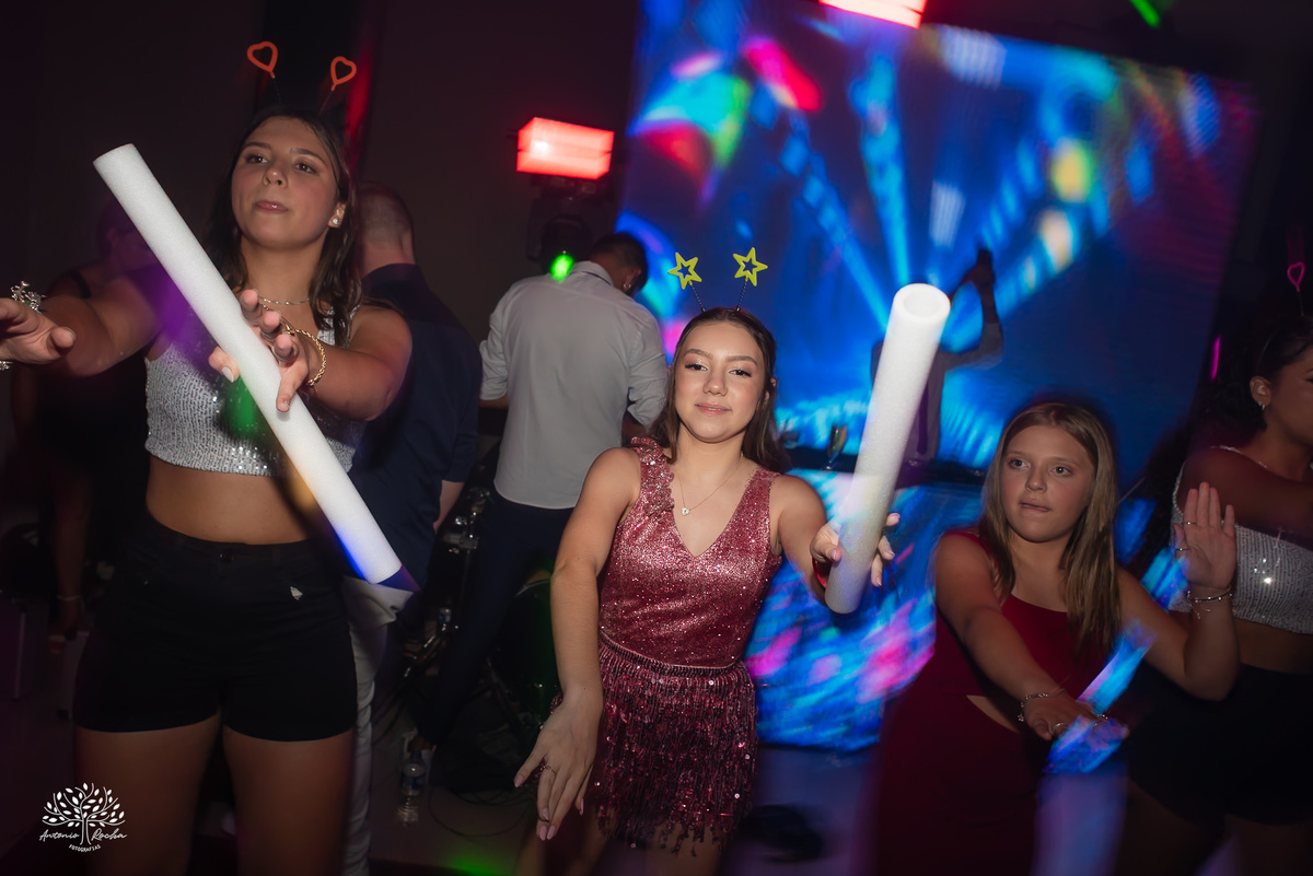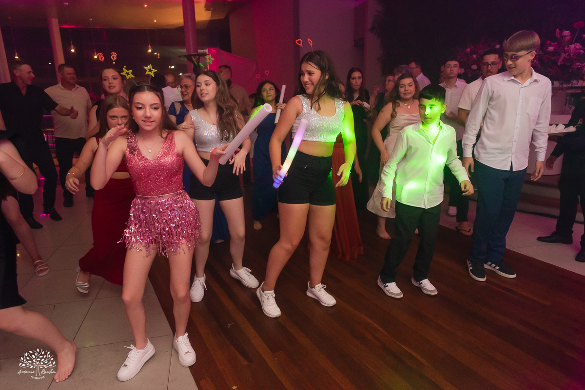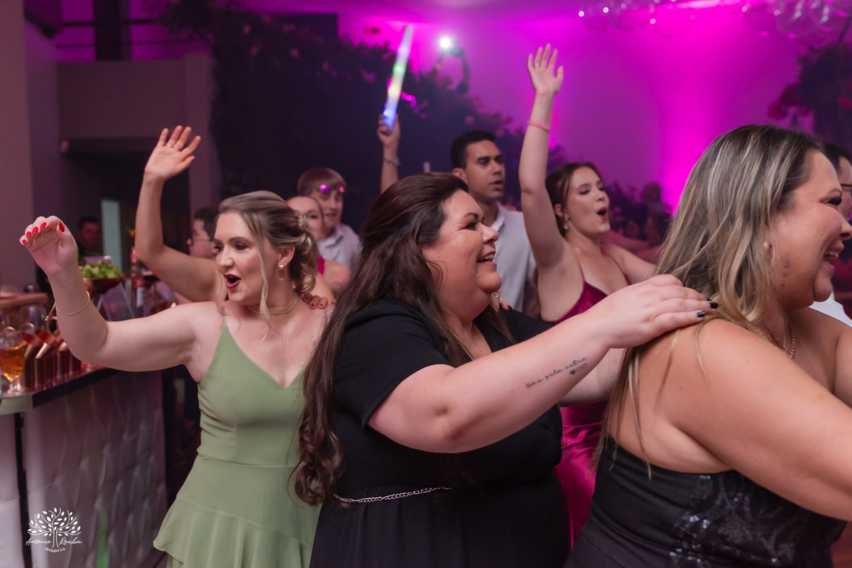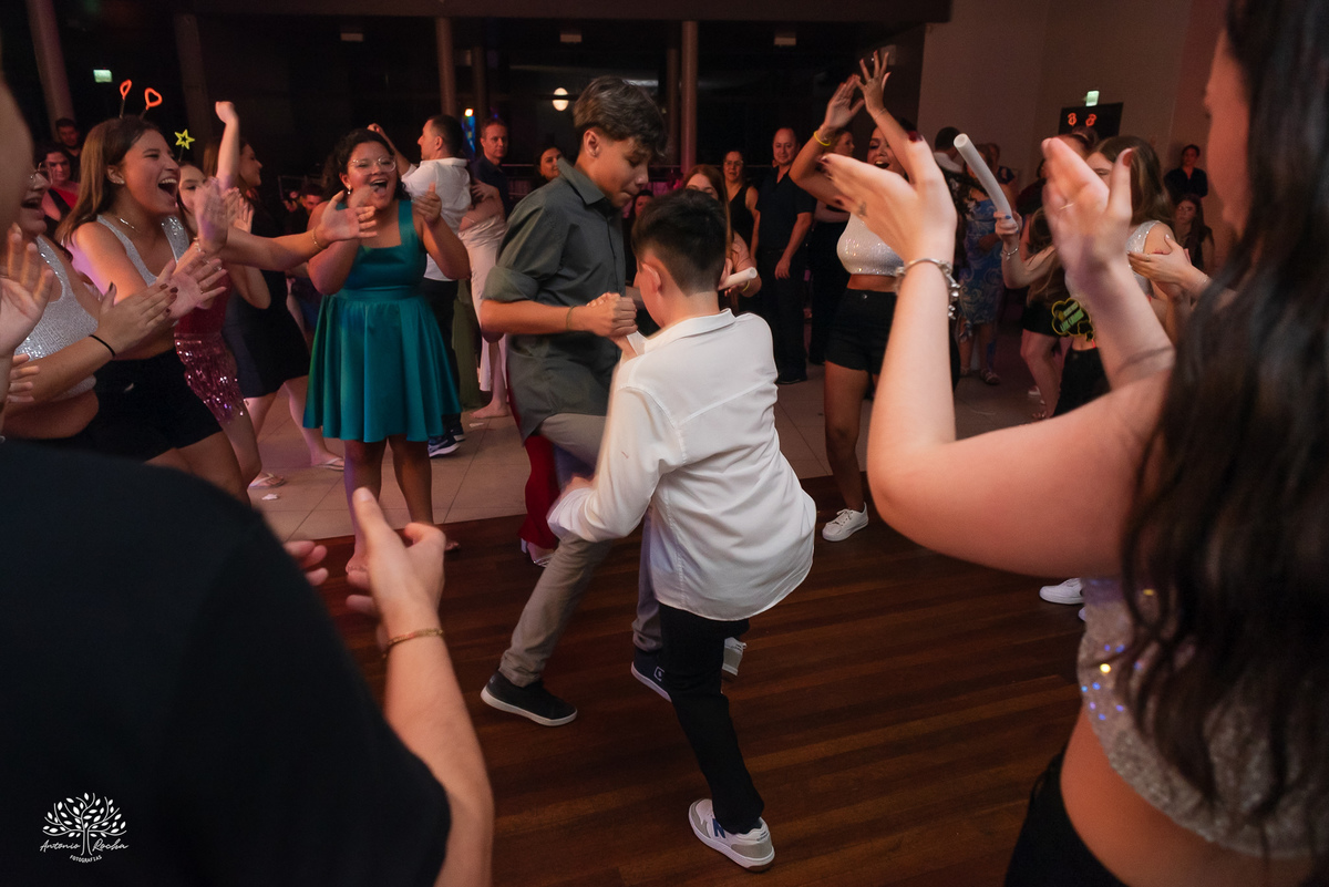 A abertura da pista de dança foi simplesmente incrível. Ao lado das amigas, da mãe, do irmão e do pai, Diulya deu início a uma celebração intensa, daquelas que a gente sabe que vão até o amanhecer. E foi exatamente assim: pista cheia o tempo todo, energia lá em cima e uma alegria que só essa família sabe transmitir. Celebramos até as 5h da manhã.
