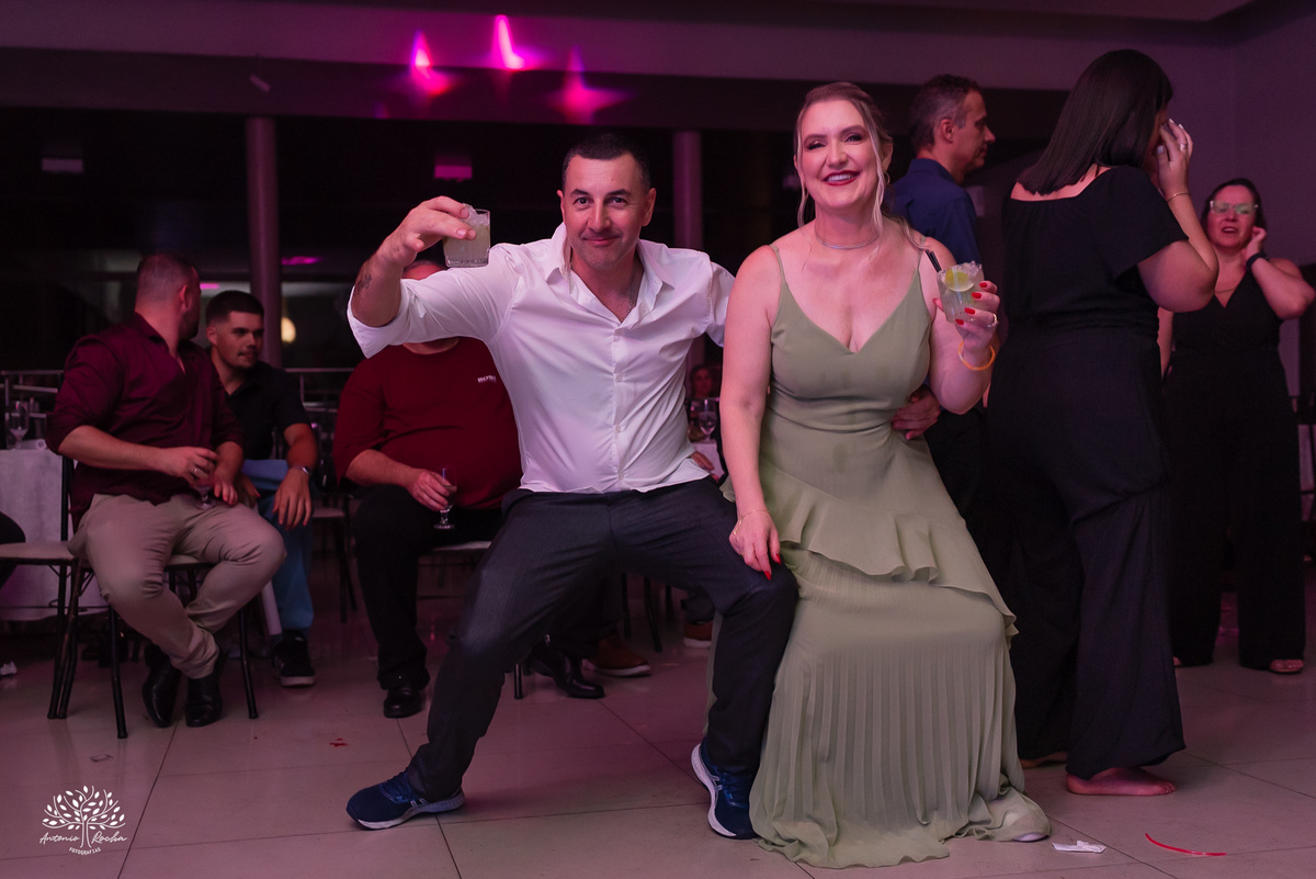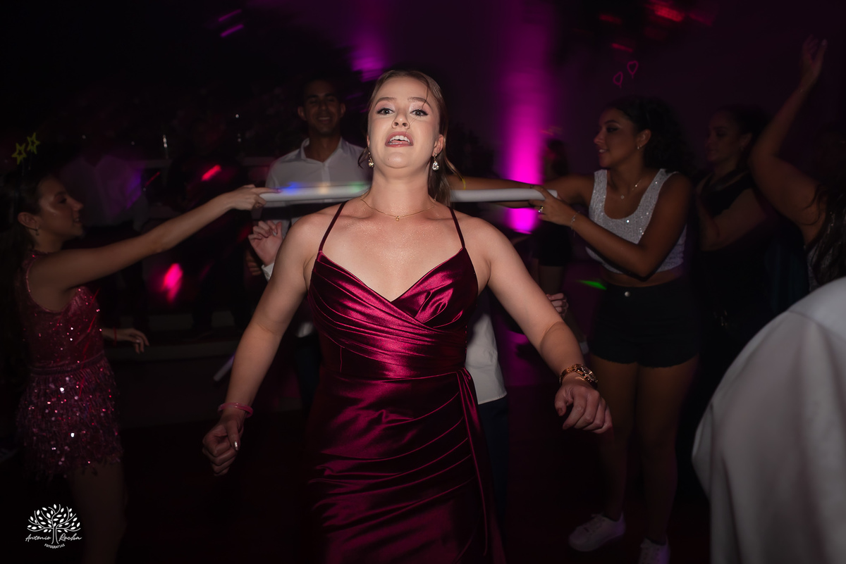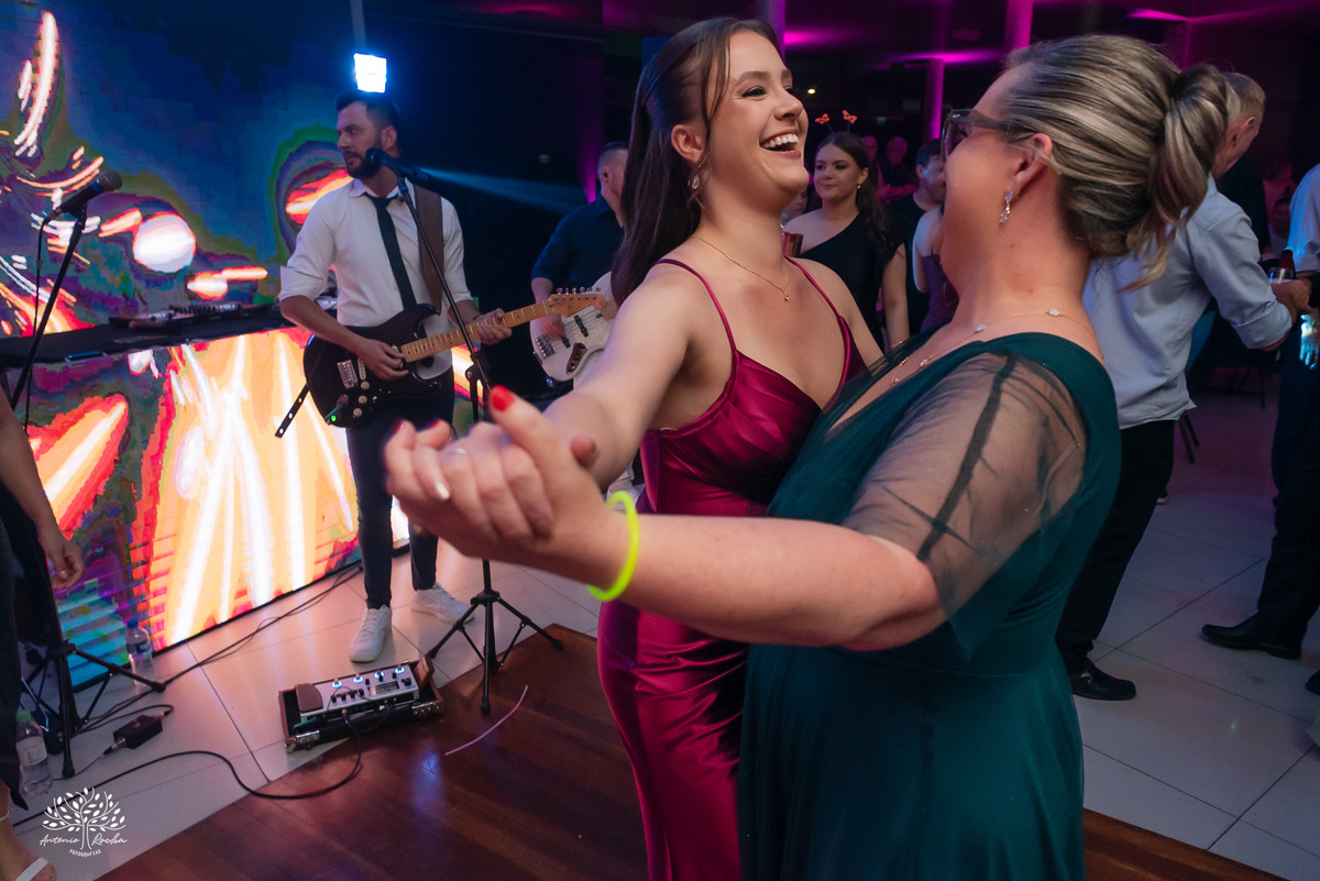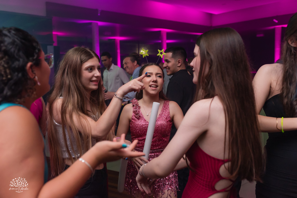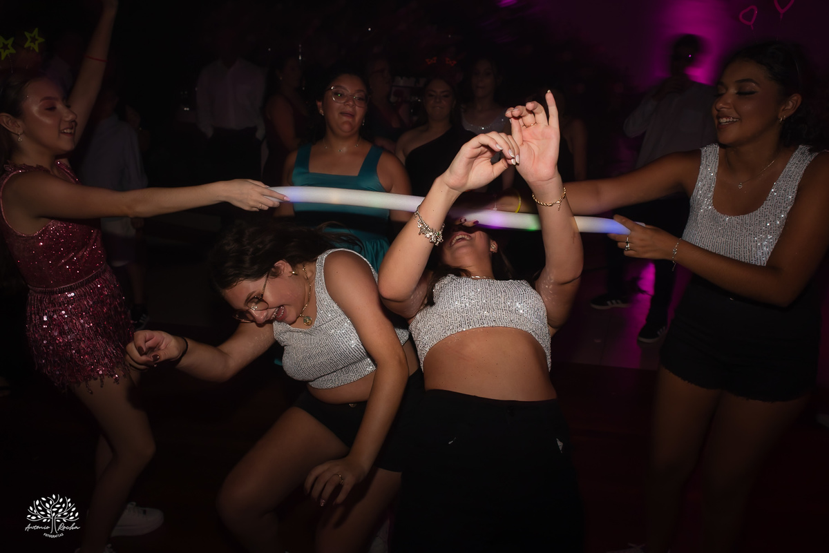 A abertura da pista de dança foi simplesmente incrível. Ao lado das amigas, da mãe, do irmão e do pai, Diulya deu início a uma celebração intensa, daquelas que a gente sabe que vão até o amanhecer. E foi exatamente assim: pista cheia o tempo todo, energia lá em cima e uma alegria que só essa família sabe transmitir. Celebramos até as 5h da manhã.