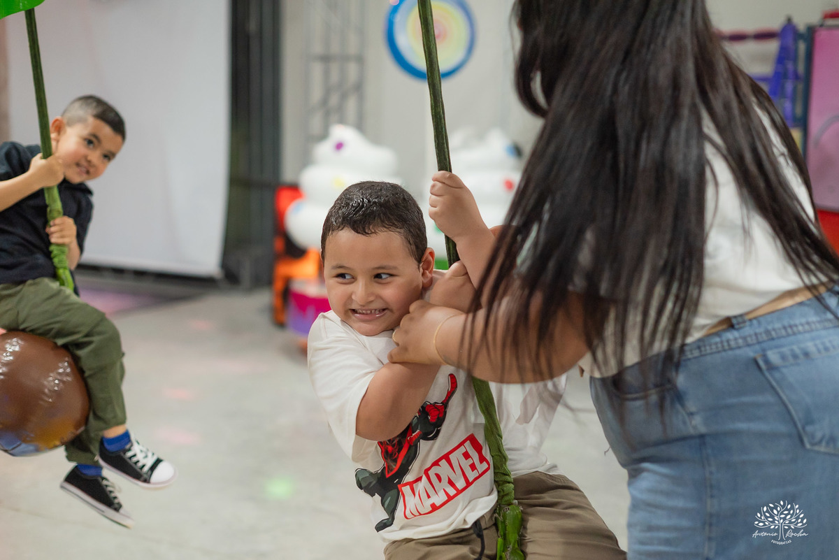 O Heitor chegou “jogando sua teia”, distribuindo sorrisos e, claro, correu direto para o playground! A energia dele contagiou todos ao redor — teve brincadeira, abraço apertado, parabéns animado, balão surpresa e até uma divertida chuva de bolinhas de sabão. 🌈