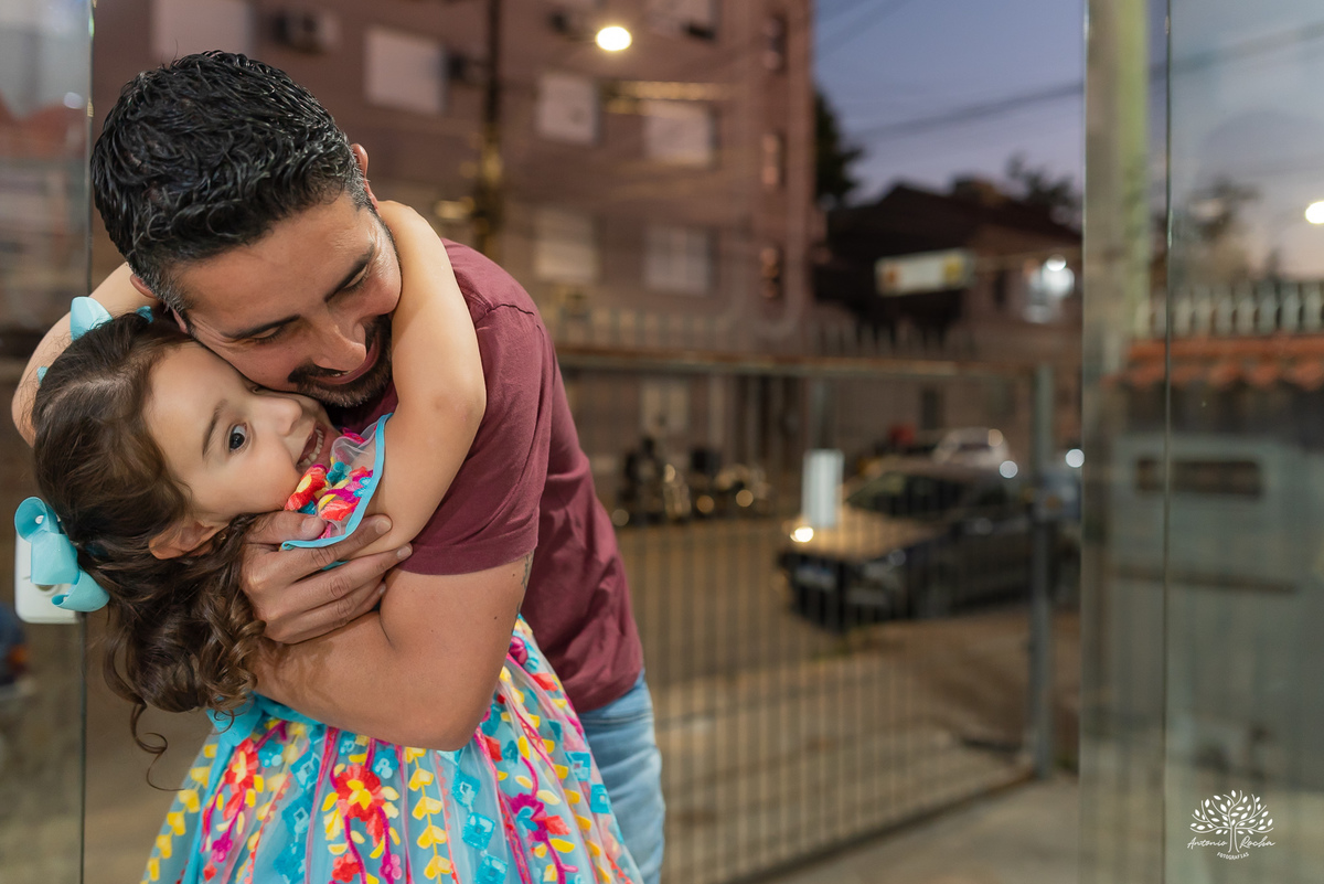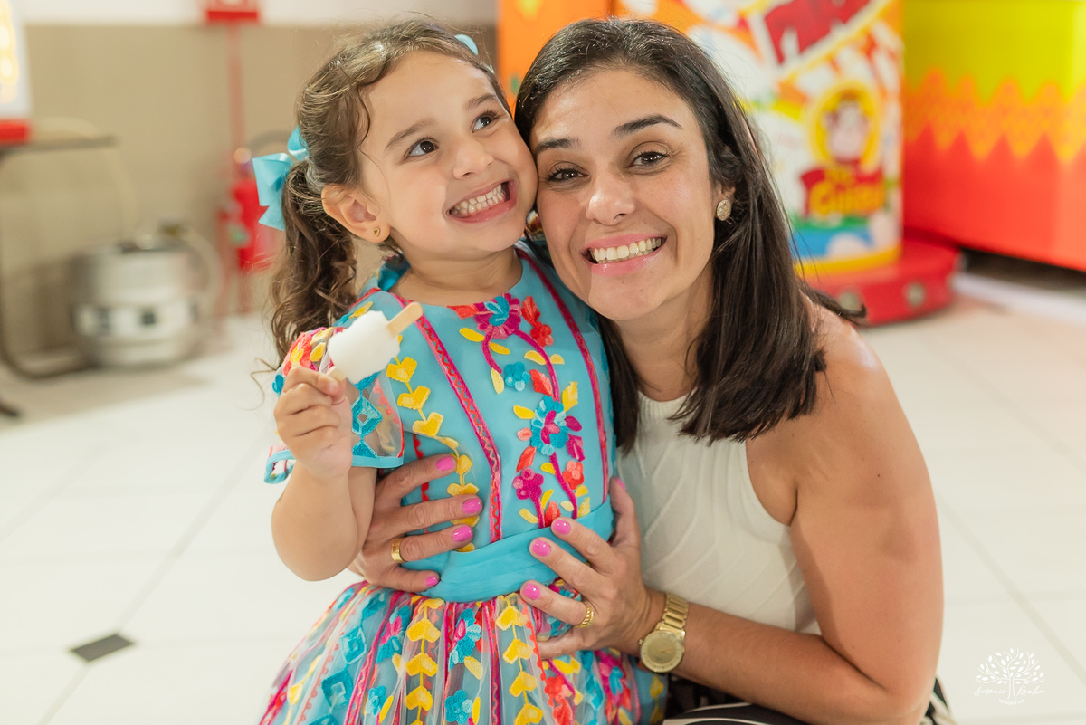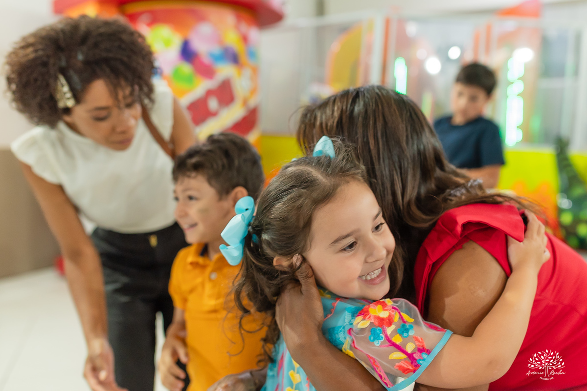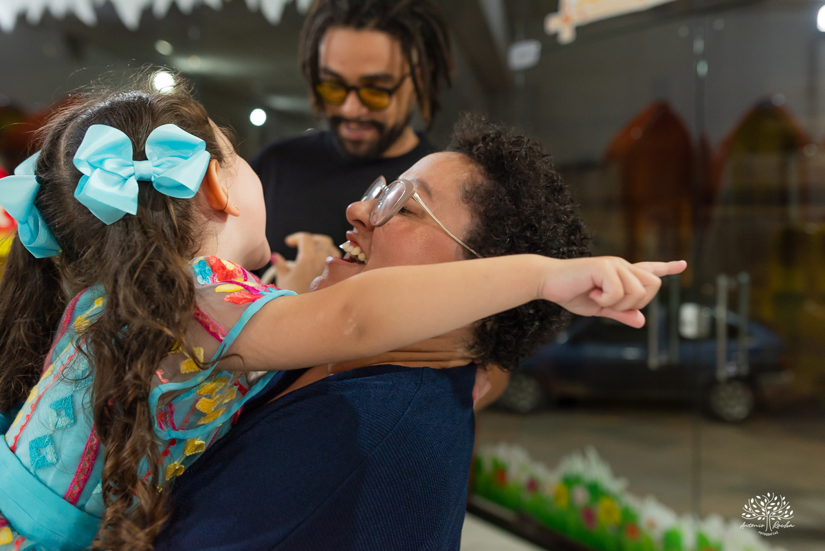 E quando o dia começou a desacelerar, veio um dos momentos mais bonitos: o colinho apertado. Já cansada de tanto brincar, Maria Eduarda encontrou no abraço o aconchego perfeito para encerrar um dia tão especial. E que cansaço bom, daqueles que só vêm depois de viver tudo com intensidade.