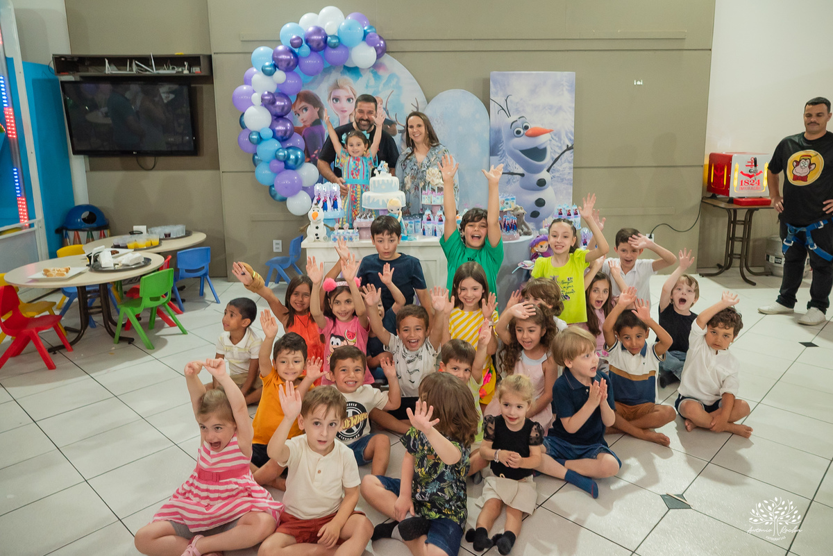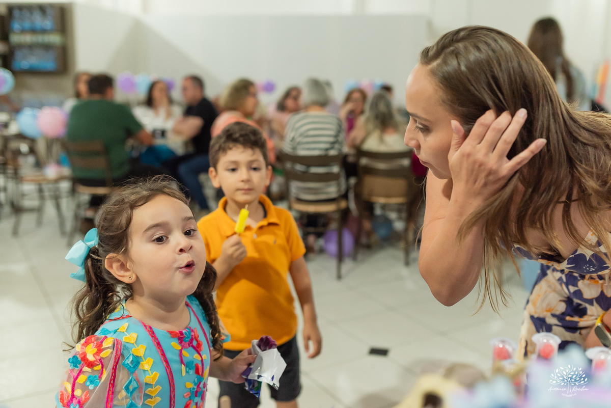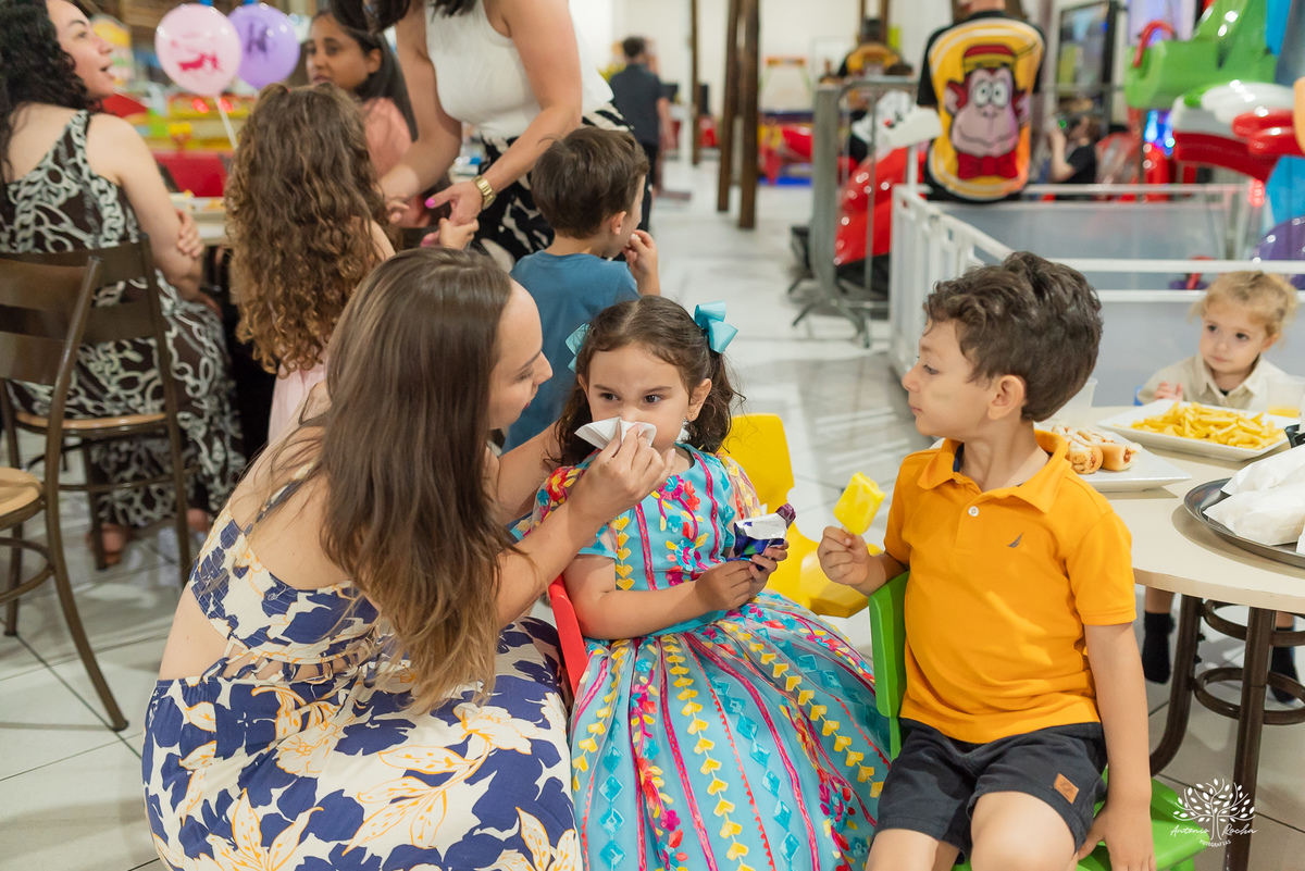 E como toda boa festa infantil, não faltaram momentos marcantes. A criançada se divertiu com cada detalhe, mas o ponto alto foi, sem dúvida, a hora do picolé: línguas coloridas, risadas soltas e uma alegria impossível de conter. Logo depois, o tão esperado parabéns trouxe ainda mais emoção — com direito a muita energia para assoprar as velinhas e, claro, a clássica correria até a mesa de doces, que foi “atacada” com entusiasmo pelos pequenos.